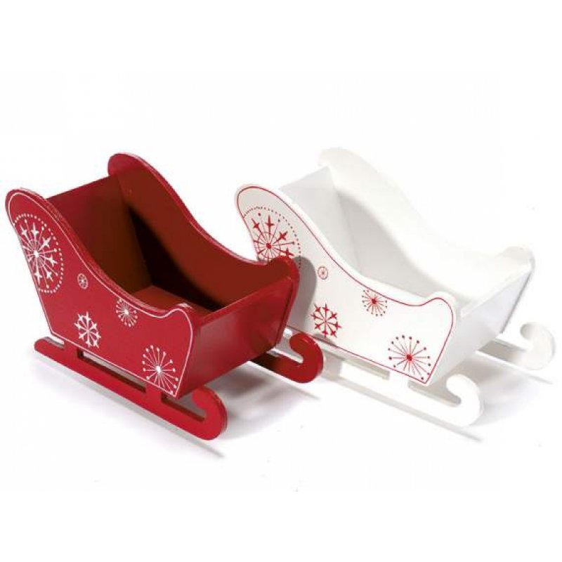 Slitta portaoggetti in legno con decori fiocchi di neve