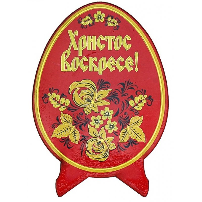 Магнит "ХВ - хохлома" изготовлен из натурального дерева с нанесением яркой картинки и золотистым тиснением. Оригинальная форма магнита в виде яйца (символа новой жизни) и изображение в стиле хохлома делают этот сувенир прекрасным элементом вашего интерьера. Он создаст светлую пасхальную атмосферу во всём доме и наполнит сердце радостью.