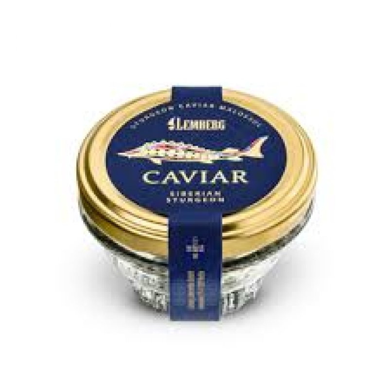 Ingredienti: uova di STORIONE bianco (ACIPENSER TRANSMONTANUS), sale, Е285. Conservare in frigo a temperatura a -2°C +2°C.