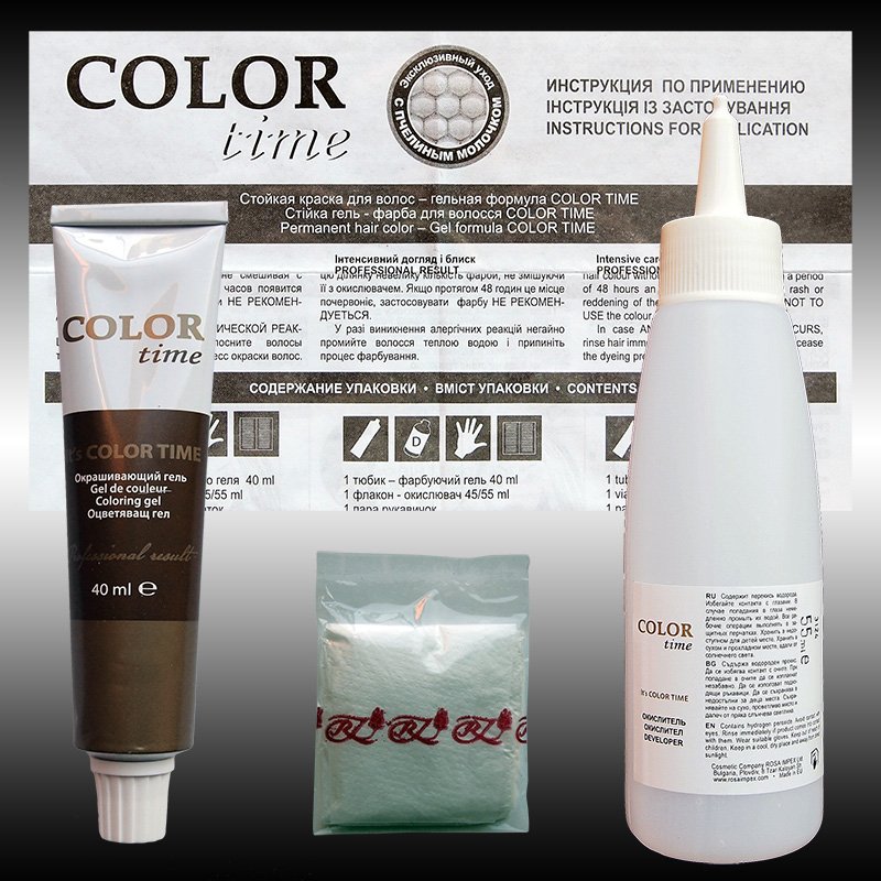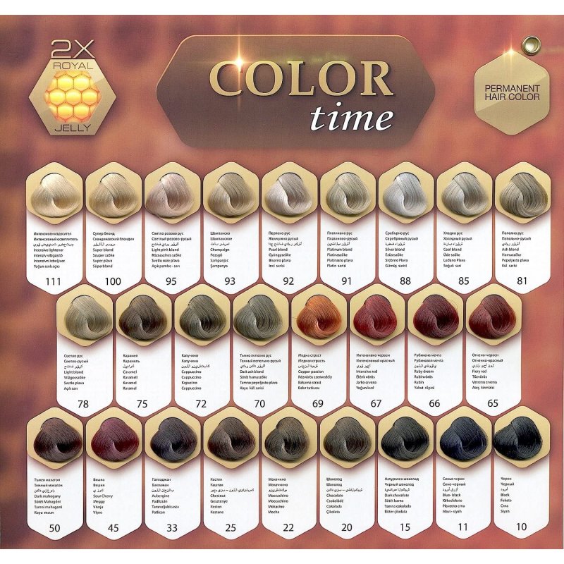 Ottieni un colore radioso e naturale con Color Time Royal Jelly Vitamin C Permanent Gel Hair Color. Colore permanente per capelli di qualità premium che offre un colore intenso e un'ampia copertura del grigio. Disponibile in una vasta gamma di colori. La tinta permanente in gel con pappa reale e 18 aminoacidi, peptidi, proteine e steroli nutrono e ristrutturano i capelli. La formula in gel consente una miscelazione e un'applicazione sui capelli facili e senza gocce e contribuisce alla penetrazione delle molecole di colore. Finitura professionale e di qualità dalla sua applicazione. Goditi un colore più intenso e brillante, oltre a una lunga durata che ti permetterà di sfoggiarlo più a lungo. Le sostanze nutritive della pappa reale risultano essere "il materiale fondamentale" per le cellule ciliate, contribuendo al recupero e fortificazione della sua struttura ea migliorarne l'aspetto. Prima dell'uso, leggere attentamente le istruzioni passo passo incluse nella confezione. Il risultato del colore dipende dal colore dei tuoi capelli. Se i tuoi capelli sono due toni più scuri del colore scelto, ti consigliamo di utilizzare prima lo sbiancamento intensivo n. 111 per attenuare la tonalità, in modo da ottenere l'effetto desiderato.