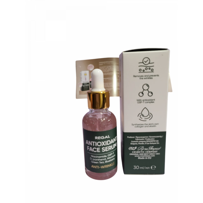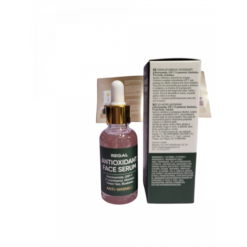 Il siero antiossidante Regal della serie Anti-Wrinkle è progettato per prendersi cura efficacemente della pelle del viso, del collo e del décolleté. Grazie alla sua formula leggera e delicata, si assorbe istantaneamente nella pelle, leviga le linee sottili, riduce la visibilità delle rughe e aiuta a prevenire nuovi segni di invecchiamento.