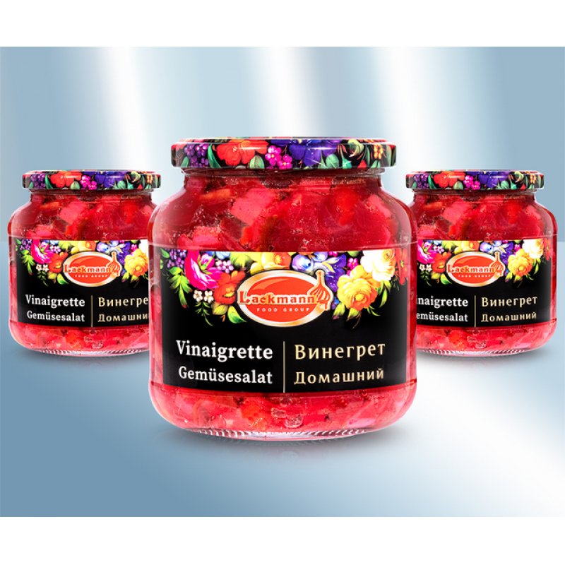 Ingredienti: cavolo bianco fermentato, cetrioli in scatola, barbabietole, patate, carote, cipolle, olio di semi di girasole, sale da cucina, correttore di acidità: (acido acetico).