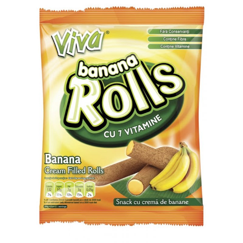 Cannucce di wafer con ripieno alla banana "Viva Rolls" (100g)