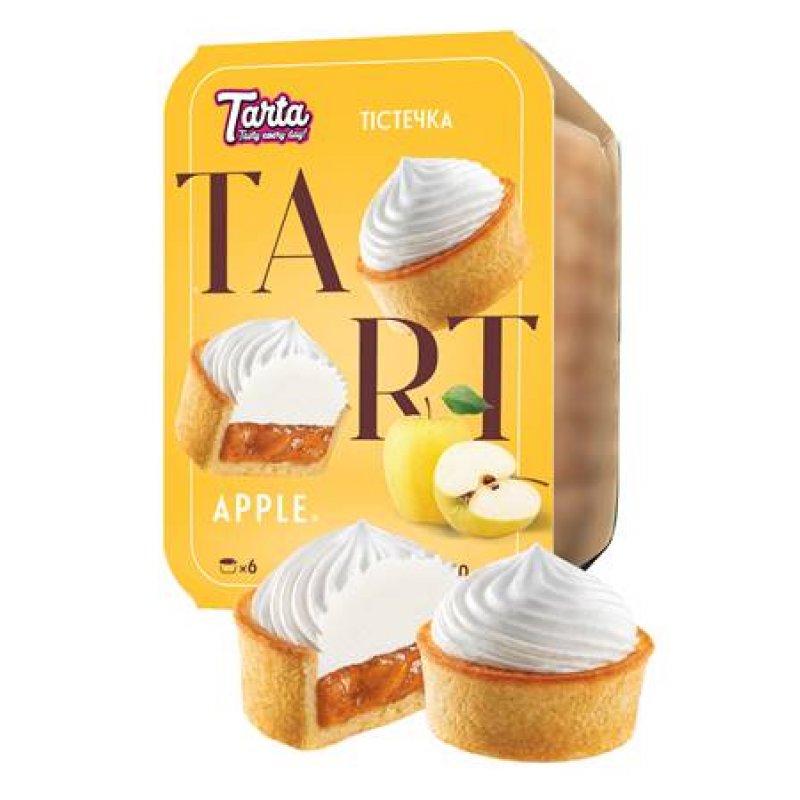 Ingredienti: Marmellata di mele 34,7% (purea di mele, zucchero), tortine di pasta frolla ((farina di FRUMENTO , margarina da tavola (oli di girasole e di palma raffinati deodorati, in forma naturale e parzialmente idrogenata, acqua potabile, sale alimentare, emulsionanti: mono- e digliceridi degli acidi grassi, lecitina di SOIA, conservante acido sorbico, aroma "Burro", regolatore di acidità acido lattico, colorante beta-carotene), zucchero, melassa, UOVA in polvere, agenti lievitanti: carbonati di ammonio, carbonati di sodio, aroma "Vanillina", regolatore di acidità aceto di alcol 9%, acqua potabile, sale alimentare)), emulsione di grassi vegetali ((acqua potabile, olio di palmisti completamente idrogenato 26%, zucchero, additivo alimentare complesso (stearoil-2-lattilato di sodio, mono- e digliceridi degli acidi grassi, idrossipropilmetilcellulosa, cellulosa, fosfati di sodio, esteri poliglicerici degli acidi grassi, sodio citrati, carbossimetilcellulosa sodica, addensante gelatina, acido citrico, etilendiamminotetraacetato disodico-calcico, gomma di guar, esteri di acidi grassi dell'acido ascorbico), destrosio, umettante sorbitolo, emulsionante polisorbato 60, conservante sorbato di potassio, sale commestibile, regolatore di acidità acido citrico, aroma "Crema alla vaniglia"), LATTE intero condensato con zucchero, LATTOSIO, glassa bianca per dolciumi, grasso vegetale, essenza di vaniglia (alcol etilico rettificato, acqua potabile, aroma di vanillina), conservante acido sorbico