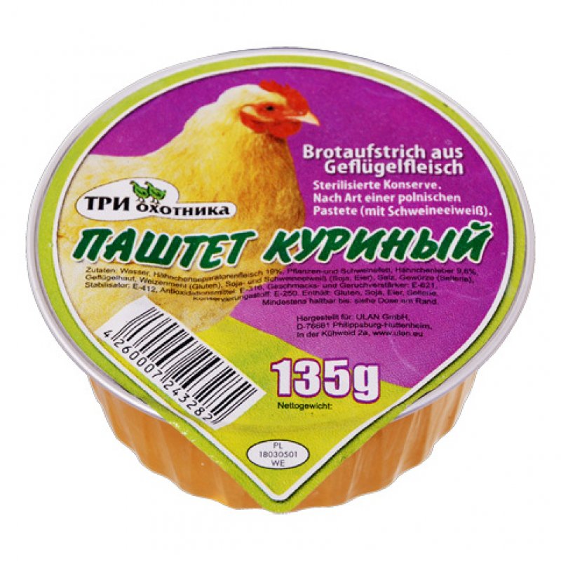 Ingredienti acqua, carne di pollo 19%, fegato di pollo 9,5%, pelle di pollo, grasso di 7%, farina di FRUMENTO, olio vegetale, sale, sciroppo di glucosio, SOIA e di proteine animali, amido di piselli, spezie, SEDANO, estratto di pepe, di saccarosio Stabilizzatore