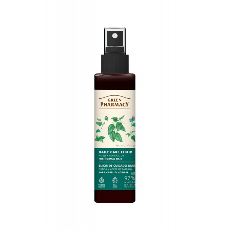 Elisir per la cura quotidiana della farmacia verde con olio di ortica e bardana per capelli normali, 15