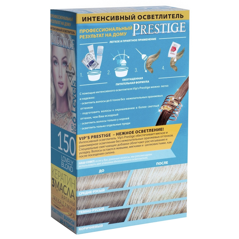 Crema-tinta resistente per capelli 150 "Vip's Prestige" schiarisce di 6 tonalità