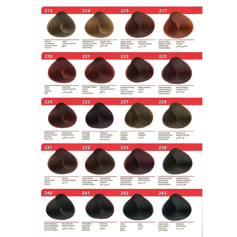 Ingredienti:Dye Cream: Aqua, Glycol Stearate, Ammonia, Sodium Laureth Sulfate, Glyceryl Stearate SE, Cetearyl Alcohol, Cocamide MEA, Cetyl Alcohol, Glycerin, Ceteareth-25, Sodium Metabisulfate, Tetrasodium EDTA, Ascorbic Acid, Etidronic Acid, PEG-30 Lanolin, Glyceryl, Linoleate, Sodium Chloride, Silicone Quaternium-20, Polyquaternium-22, Paraffinum Liquidum, p-Phenylendiamine, p-Aminophenol, m-Aminophenol, Resorcinol. The components of the colouring cream may vary depending on the colour. Oxidizing CreamAqua, Hydrogen Peroxide, Cetearyl Alcohol, Stearyl Alcohol, Steareth-7, Steareth-10, Glyceryl Stearate, Sodium Cetearyl Sulfate, Glycerin, Sodium Lauryl Sulfate, Pentasodium Pentatate, Disodium Pyrophosphate, Sodium Stannate, Sodium Benzoate, Phosphoric Acid. Conditioner: Aqua, Cetearyl Alcohol, Amidomethicone, Paraffinum Liquidum, Behentrimonium Chloride, Ceteareth-25, Glycerin, Trideceth-12, Stearamidopropyl Dimethylamine, Silicone, Quaternium-20, Hydroxyethylcellulose, Cetrimonium Chloride, Polyquaternium-22, Argania Spinosa Kernel Oil, Macadamia Ternifolia Seed Oil, Salvia Hispanica Seed Oil, Hydrolyzen Keratin, Phenoxyethanol, Potassium Sorbate, Citric Acid, Parfum, 2-Bromo-2-Nitropropane-1,3-Diol